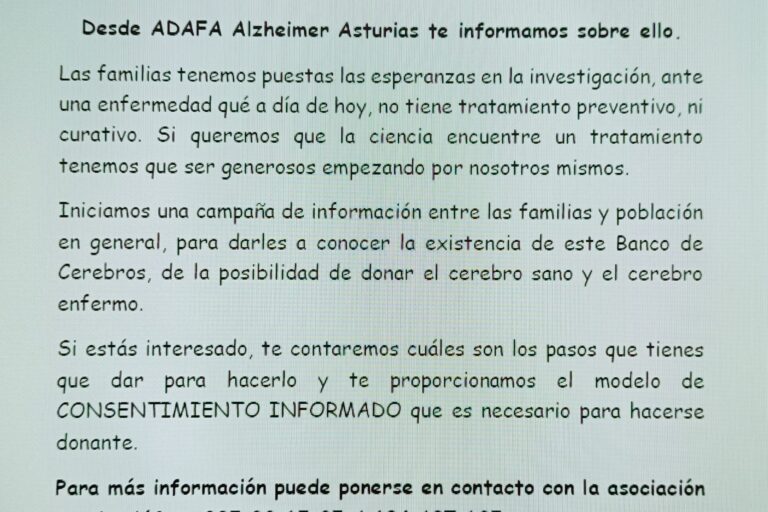 Desde ADAFA Alzheimer Asturias, tratamos de concienciar a la población en general sobre la importancia de donar nuestro cerebro a la ciencia con el fin de que se pueda seguir investigando sobre la enfermedad de Alzheimer. Para ello se necesitan cerebros sanos y cerebros afectados por la enfermedad. Por eso desde ADAFA, continuamos con…