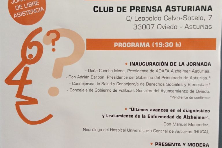 Para conmemorar el Dia Mundial del Alzheimer 2023, ADAFA Alzheimer Asturias ha organizado un acto que tendrá lugar el Miércoles 20 de Septiembre a las 19.30 horas en el Club de Prensa La Nueva España de Oviedo. Contaremos con la intervención de Don Manuel Menéndez Neurólogo del HUCA que impartirá la charla titulada “Últimos avances…