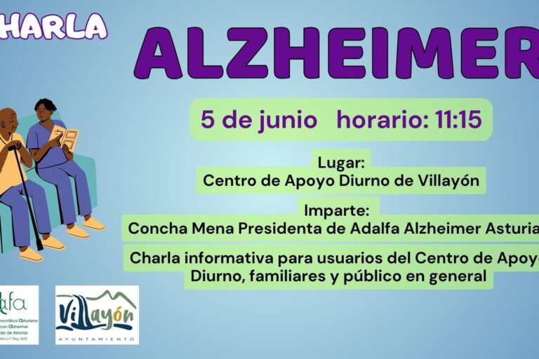El próximo jueves 5 de junio la Presidenta de ADAFA Alzheimer Asturias, Concha Mena, impartirá una charla sobre Alzheimer Y Familia  en el Centro de Apoyo Diurno de Villayón, Asturias. La charla irá destinada a los usuarios del centro, familiares y público en general que esté interesado.