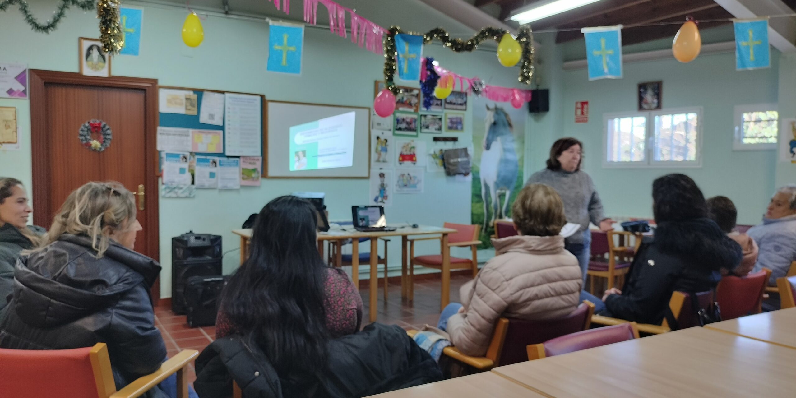 El viernes 26 de Diciembre, la Presidenta de ADAFA, Concha Mena y la Trabajadora Social, Lorena Crespo, acudieron al centro Social de Personas Mayores de Roces -Gijón, para impartir una charla a un grupo de mujeres. Todas eran mujeres cuidadoras, y además de una charla, resultó ser un encuentro en el que se intercambiaron impresiones, explicaron sus vivencias, sus preocupaciones y las situaciones problemáticas que viven desde que son cuidadoras.
