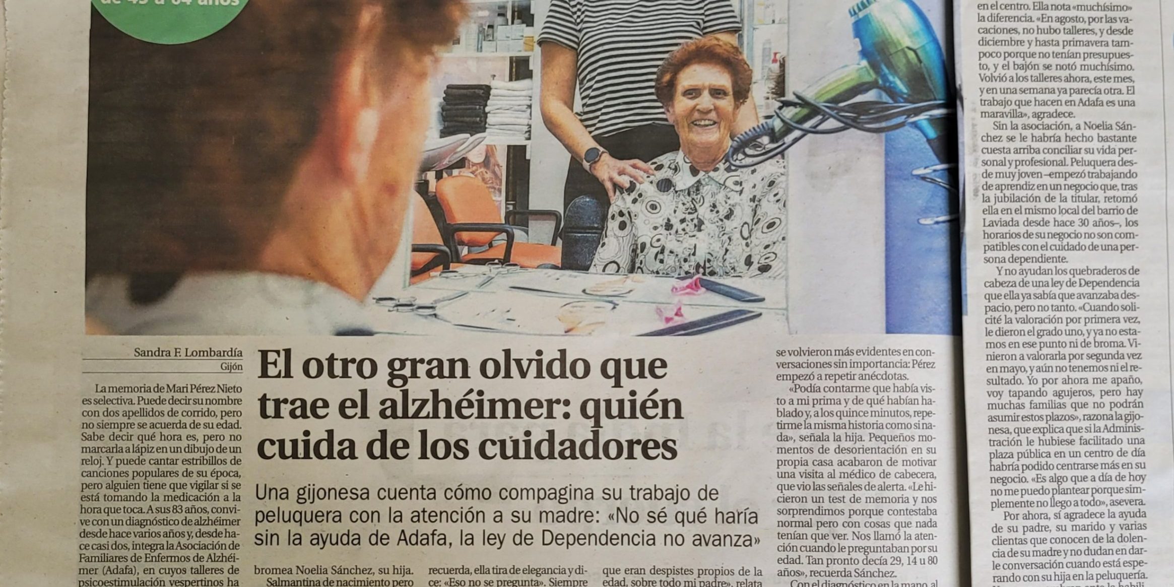Nos hacemos eco, de dos entrevistas publicadas hoy en La Nueva España en la edición en papel. Una de ellas, es la entrevista de una socia de ADAFA, en la que relata su vivencia con la enfermedad de su madre. La otra es la entrevista a la Presidenta de ADAFA Alzheimer Asturias. Os mostramos el artículo.